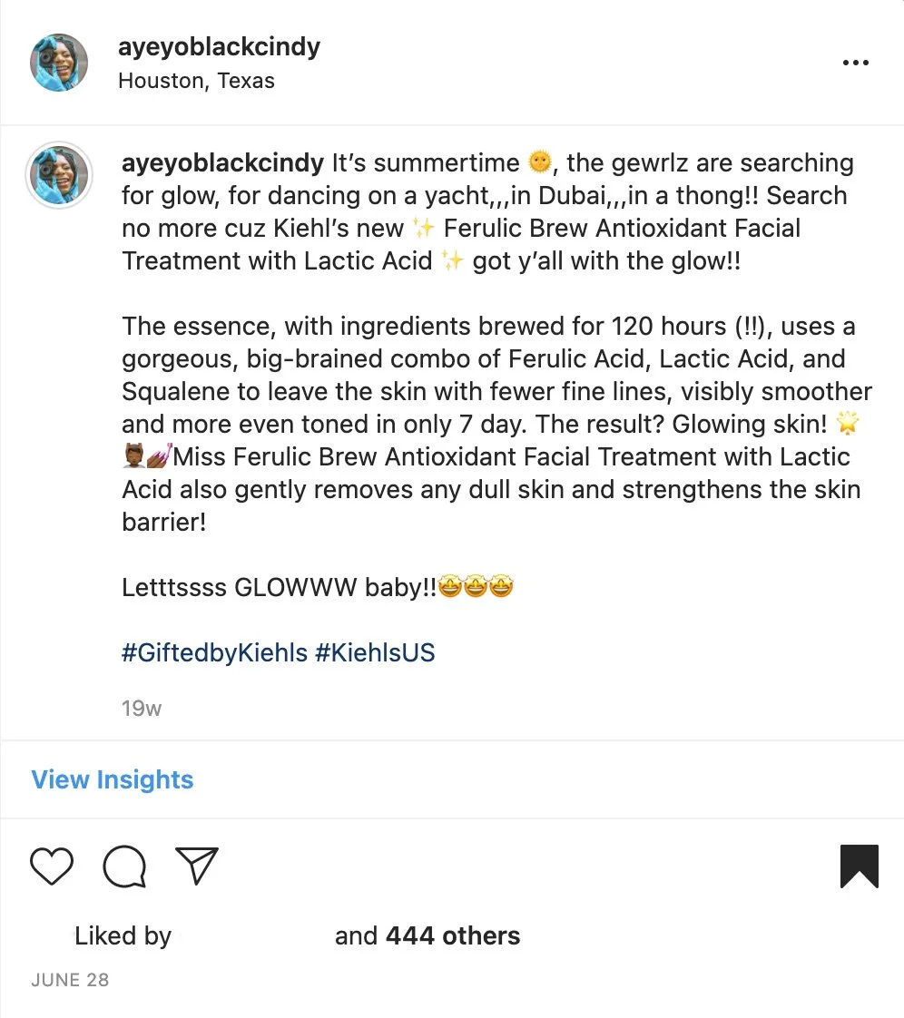 Kiehl’s needs the help of established content creators in launching their new Ferulic Brew Antioxidant Facial Treatment with Lactic Acid. They need fun, airy visual content and copy targeted to those invested in the “Hot Girl Summer”, complete with the hashtags #giftedbykiehls #kiehlsUS.